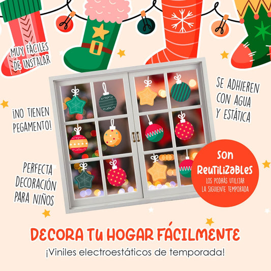 Vinilos decorativos Adhesivos infantiles de vinilo para ventanas Navideñas Con adornos