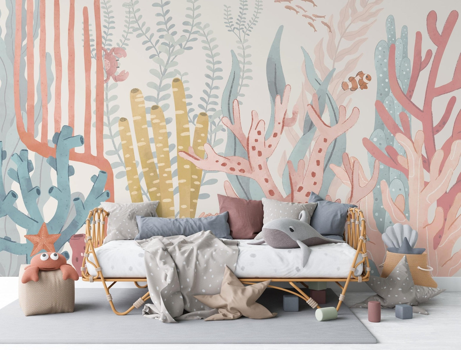 - Adhiere y alisa: Coloca el mural sobre la pared y alisa con una espátula de plástico o un paño suave desde el centro hacia los bordes para evitar burbujas.