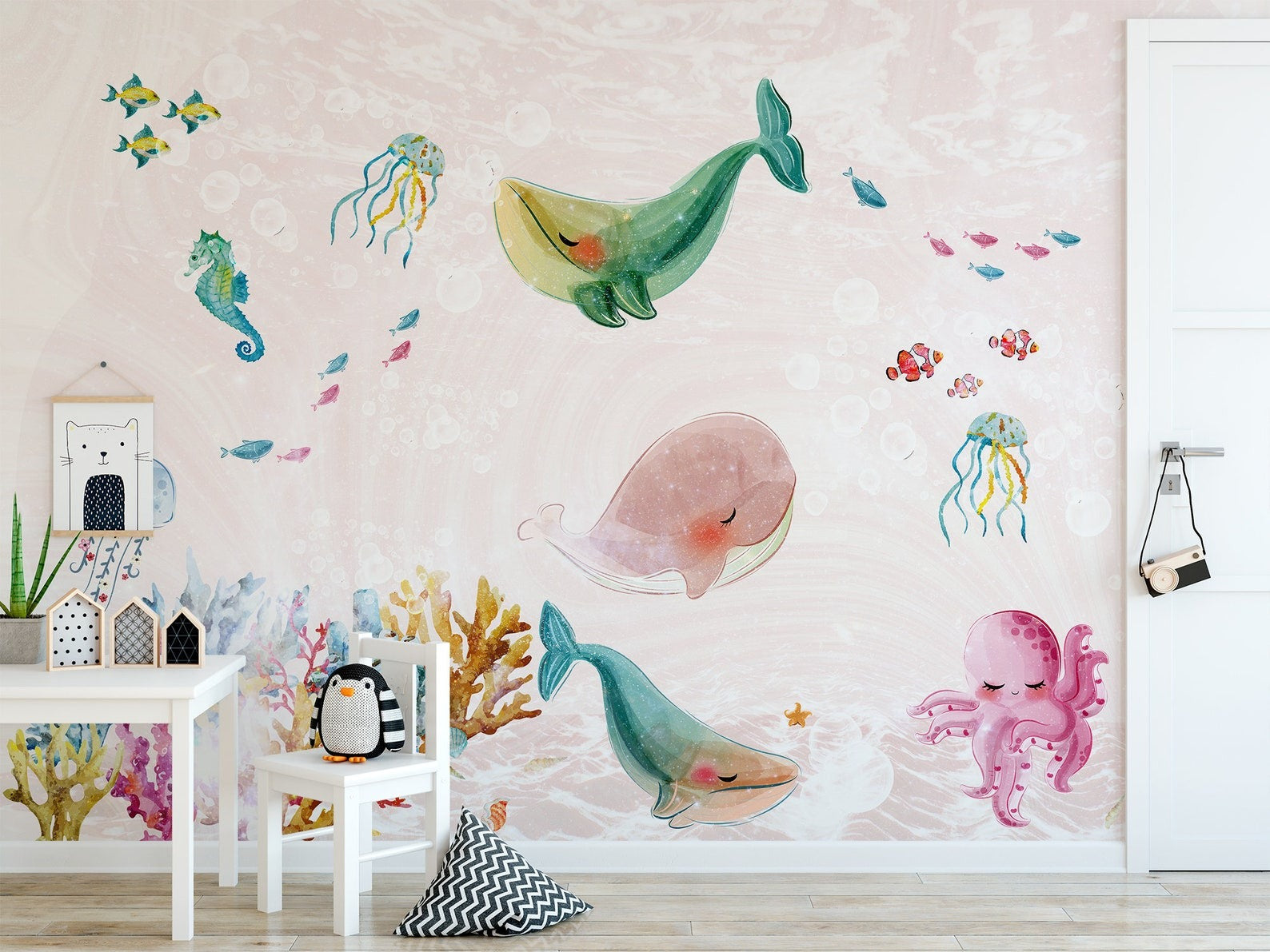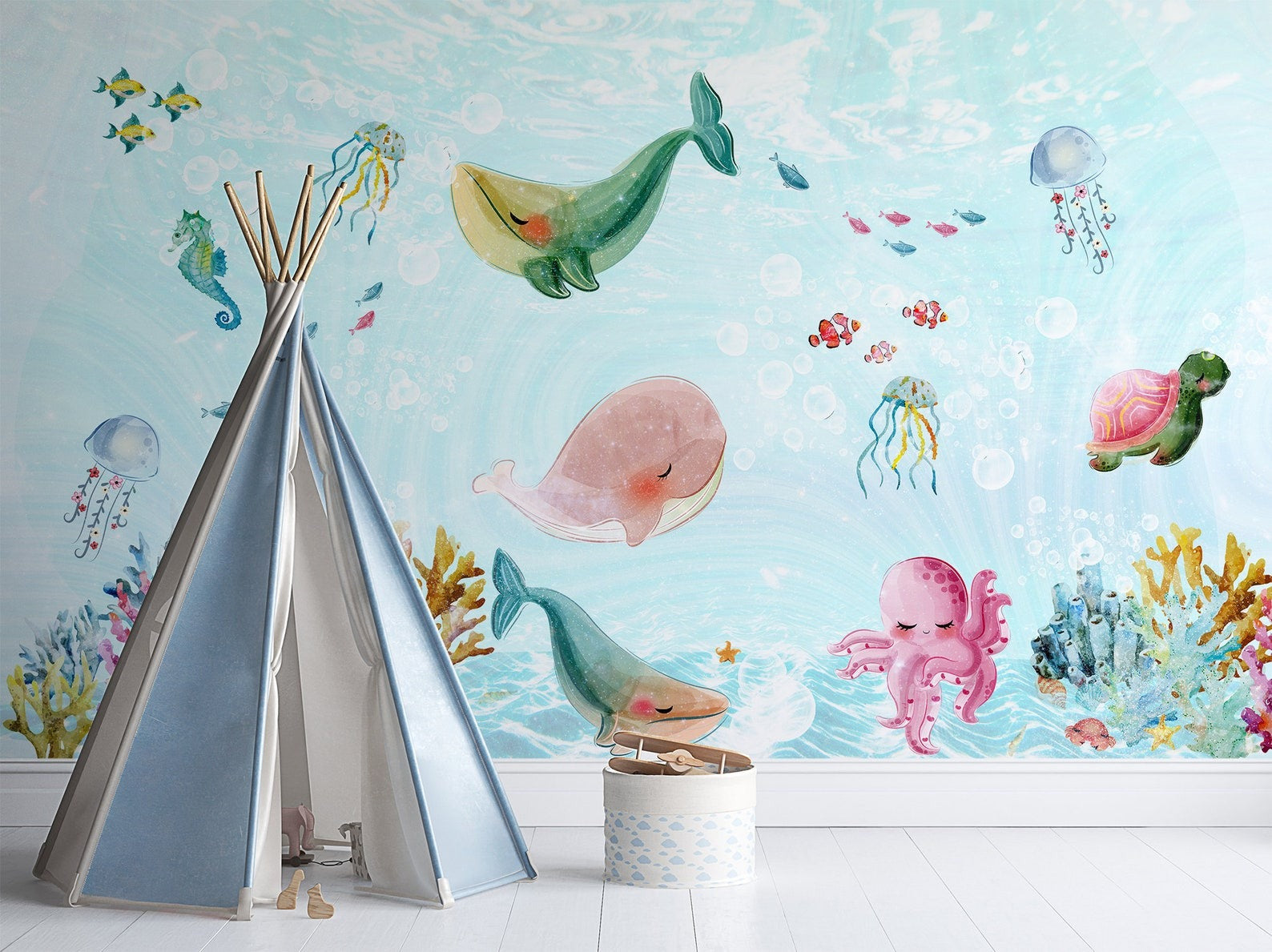 Papel para paredes Fondo Marino animales Coquetos