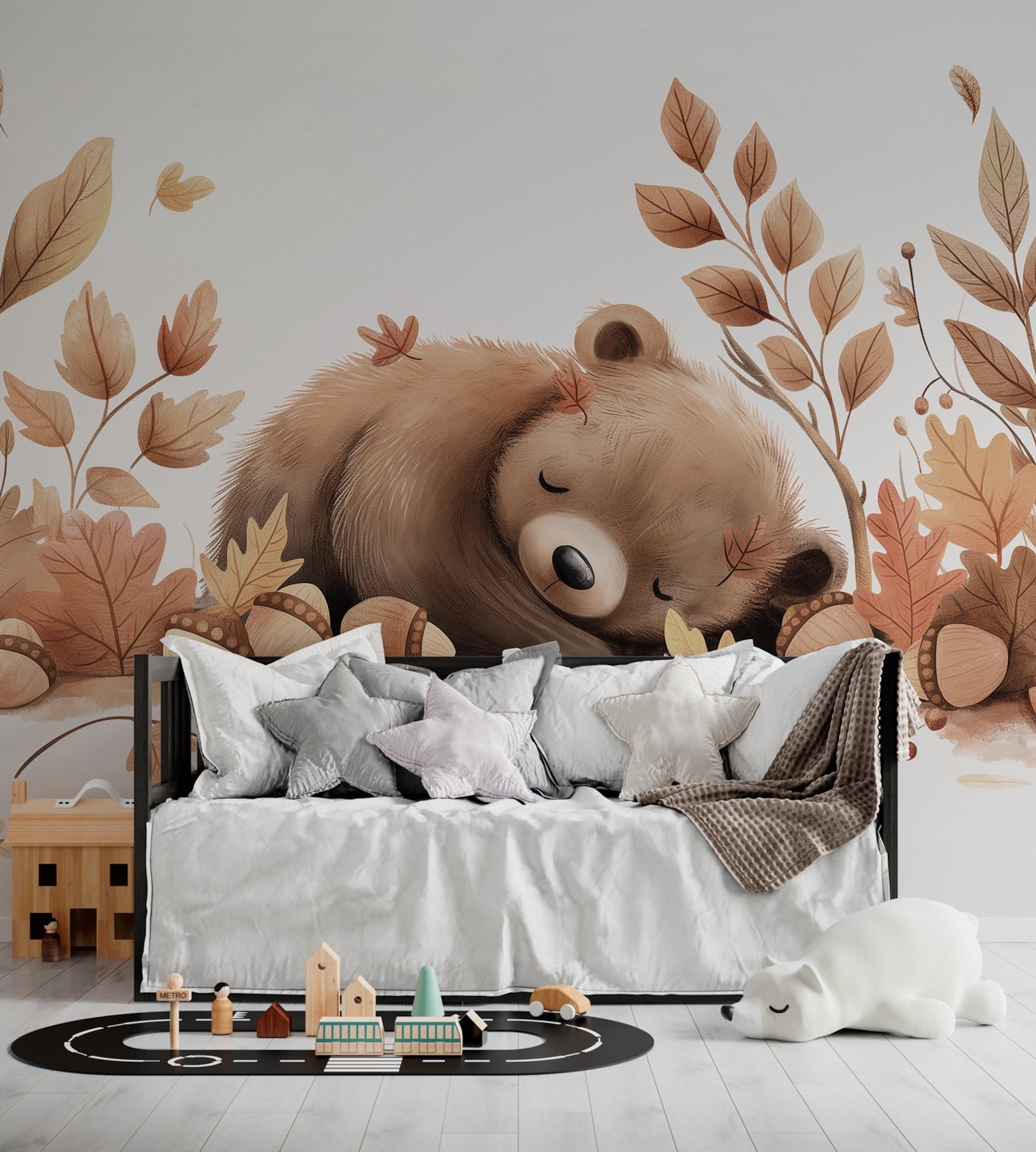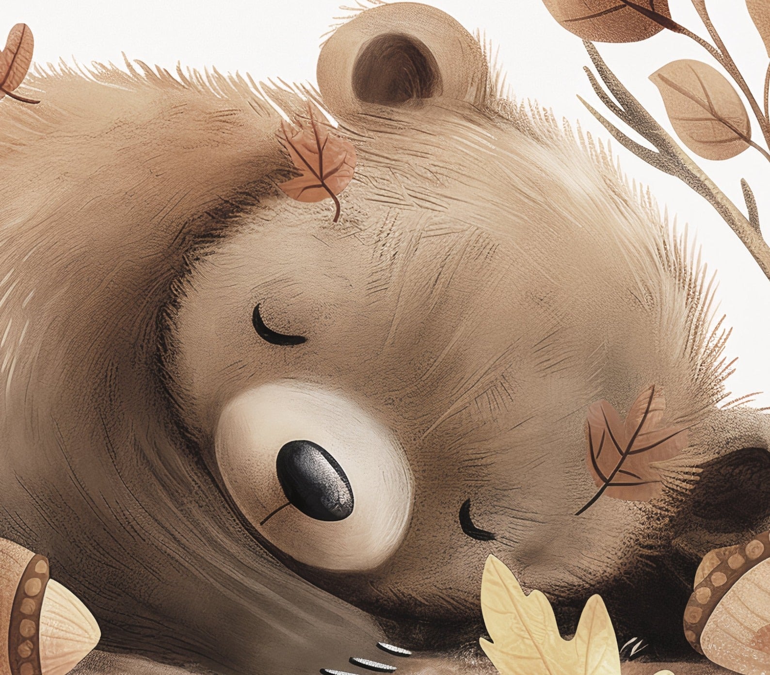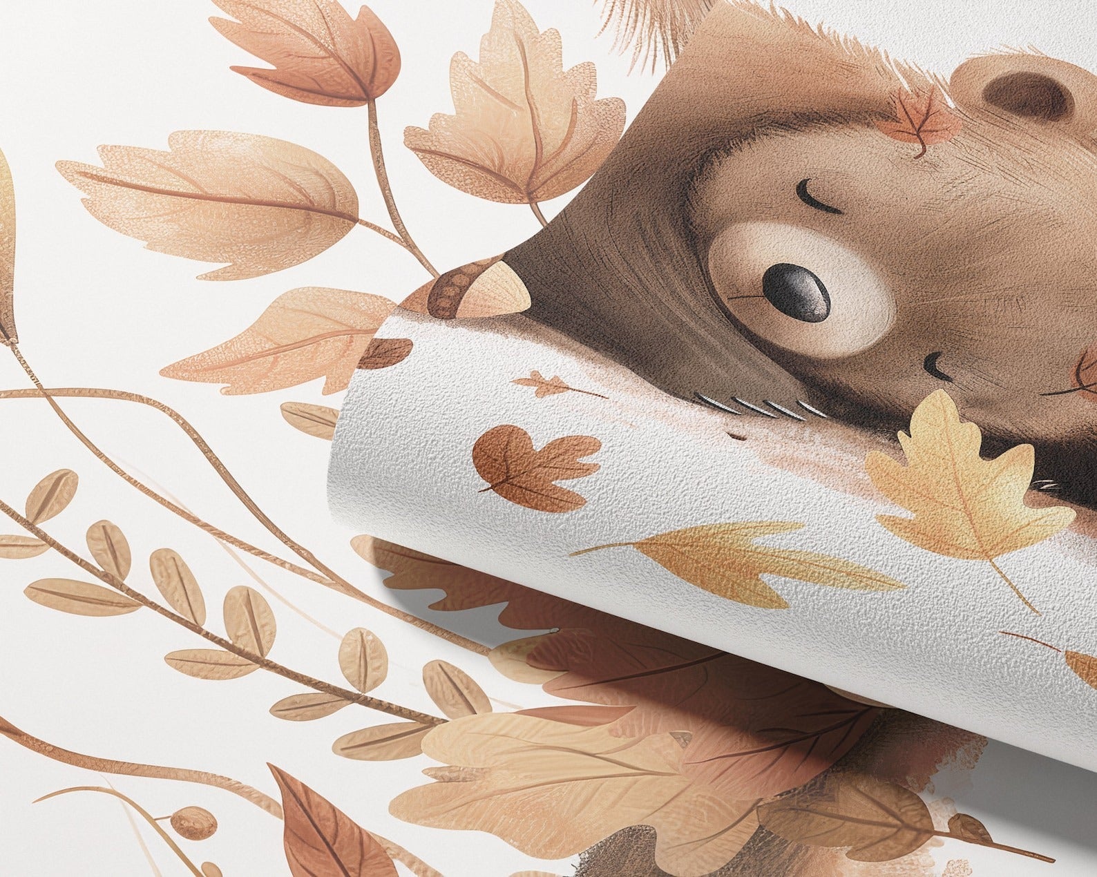 Papel para paredes Oso dormido con Hojas