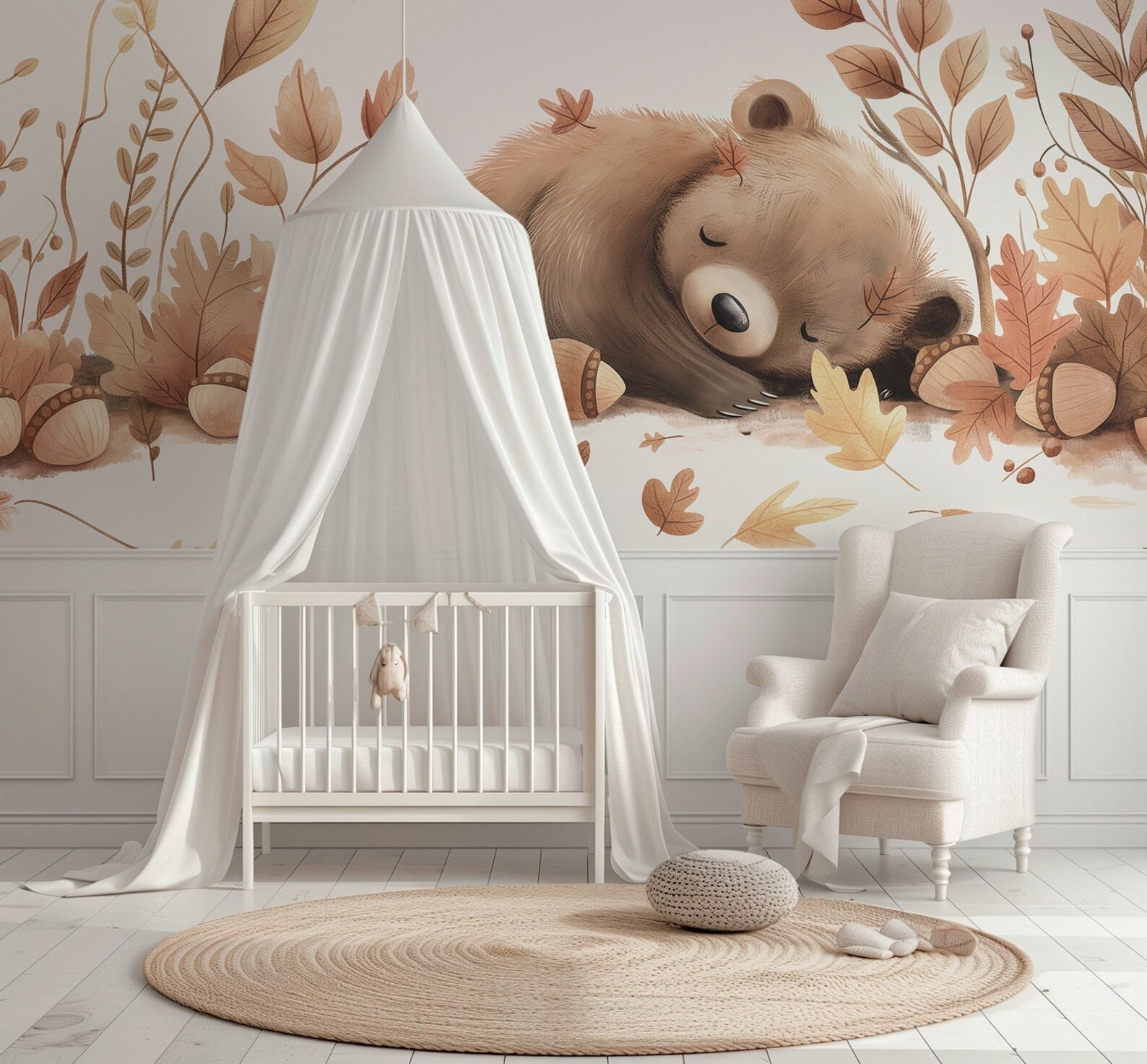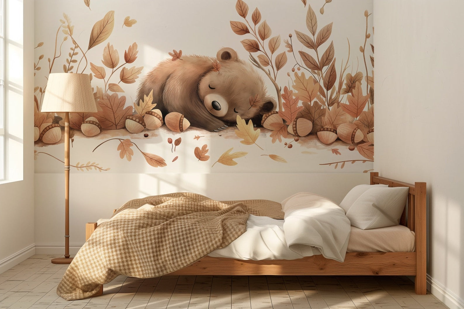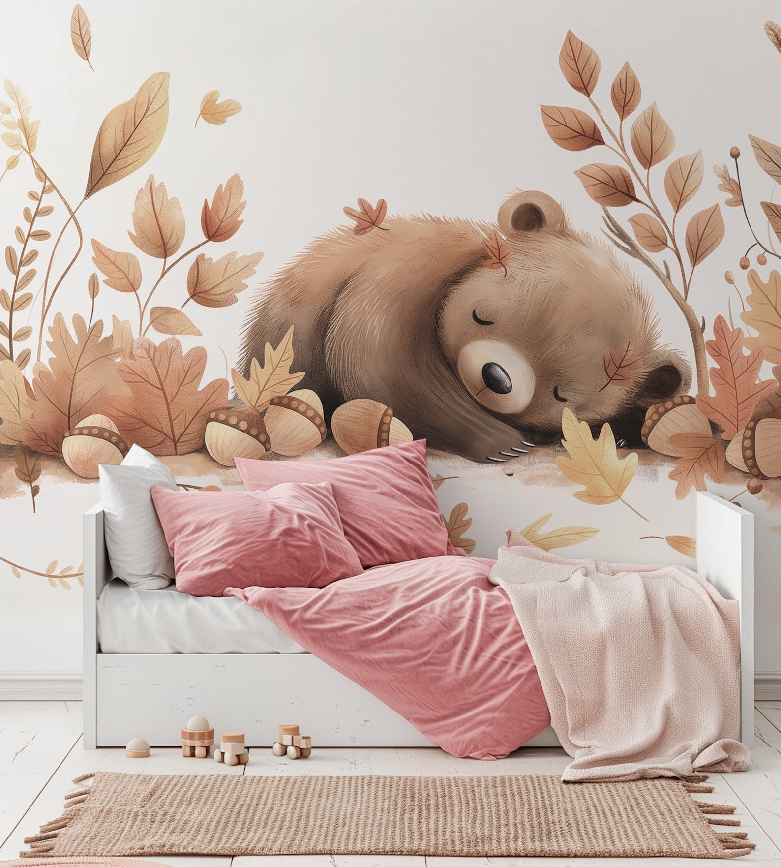 Papel para paredes Oso dormido con Hojas
