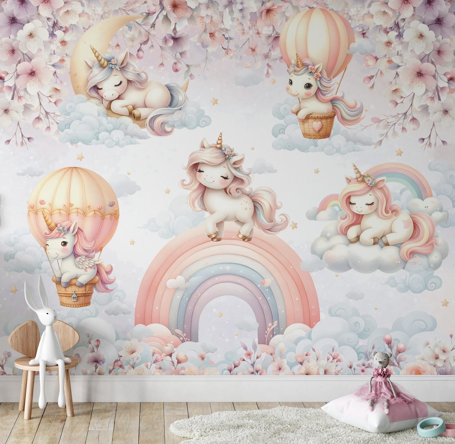 Papel para paredes Unicornios en el cielo